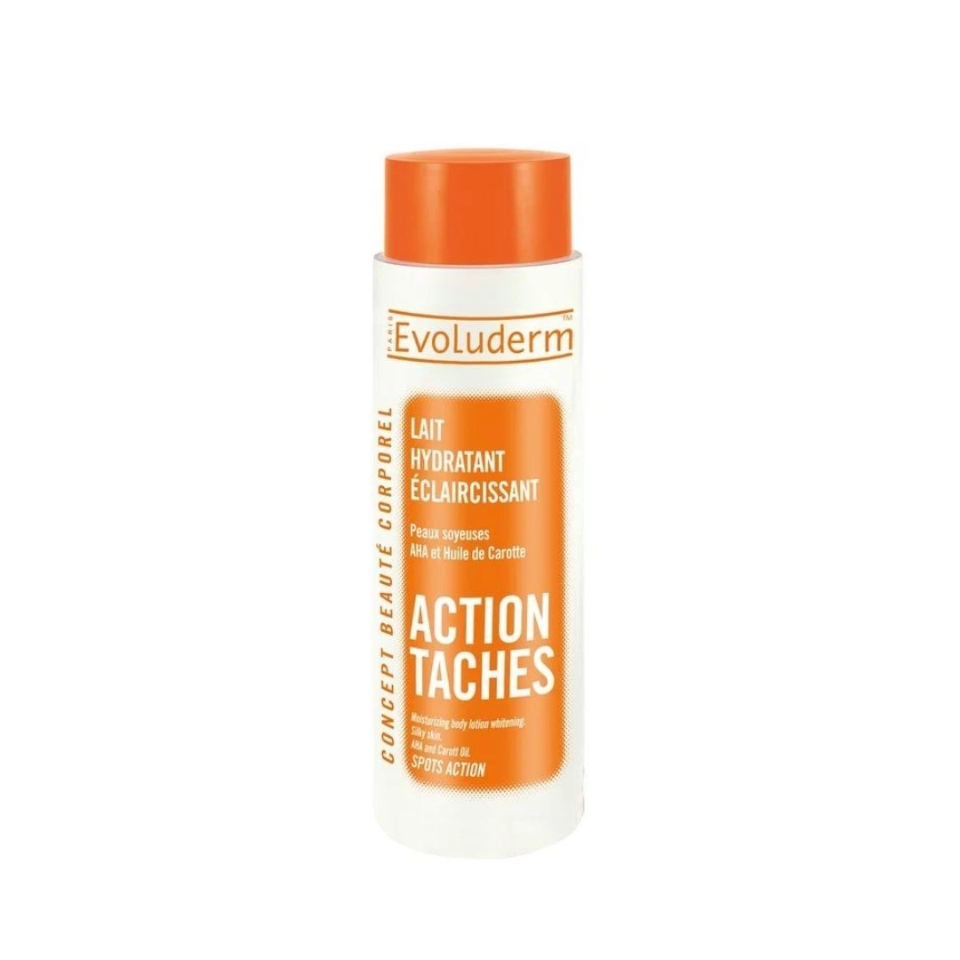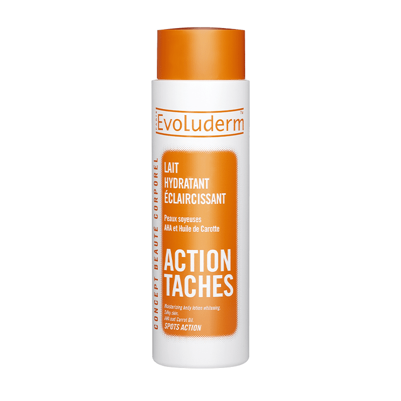 Le Lait Hydratant Éclaircissant ACTION TÂCHES atténue l’apparition des tâches pigmentaires pour une peau soyeuse et éclatante. Il associe l’Huile de Carotte, reconnue pour ses vertus adoucissantes, aux AHA, reconnus pour leurs propriétés hydratantes et exfoliantes. Il aide à éliminer les cellules mortes de la peau et unifie le teint.