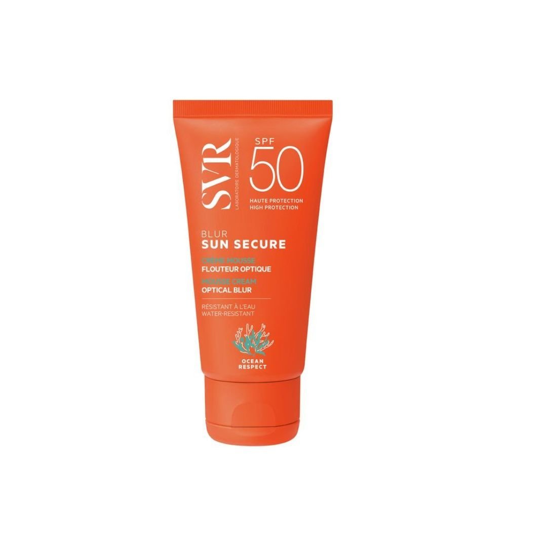 SVR Sun Secure Blur Sans Parfum Spf50+ 50ml offre une très haute protection solaire dans une texture mousse magique ! Formulée sans parfum, sa crème mousse abricotée fond instantanément sur la peau et devient invisible pour un effet peau nue.